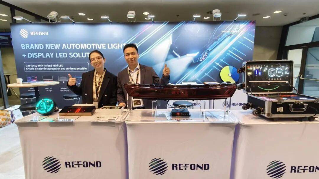 此外,瑞丰光电依托Mini LED直显技术“小、轻、薄、柔、像素化”的核心优势,打造的内饰氛围灯、像素化智能尾灯、动态车标等一系列创新产品,通过色彩和动态动画的变化,以及信息交互的智能表达与控制,不仅能提升行车安全和照明美学体验,还能实现智能驾驶辅助、人车交互等功能,为汽车智能座舱与外饰的交互升级提供技术支撑。